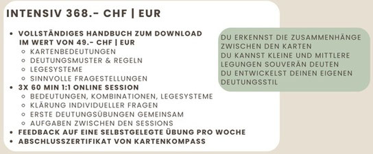 Kartenlegen wirkt von aussen oft leichter, als es wirklich ist. Viele sehen die Bilder, aber die klare Botschaft dahinter fehlt. Und genau da setzt der Kartenkompass an. Ich habe für dich das Insight Programm entwickelt, wenn du verstehen willst, warum eine Karte etwas sagt und wie du sie richtig deutest.